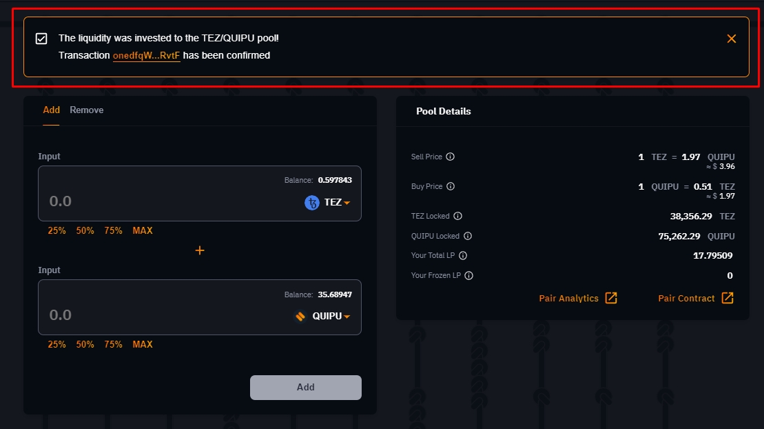 5. Choose the number of tokens that you want to invest and click the "Add" Button