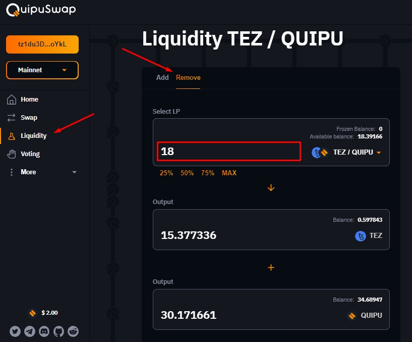 How to remove liquidity
