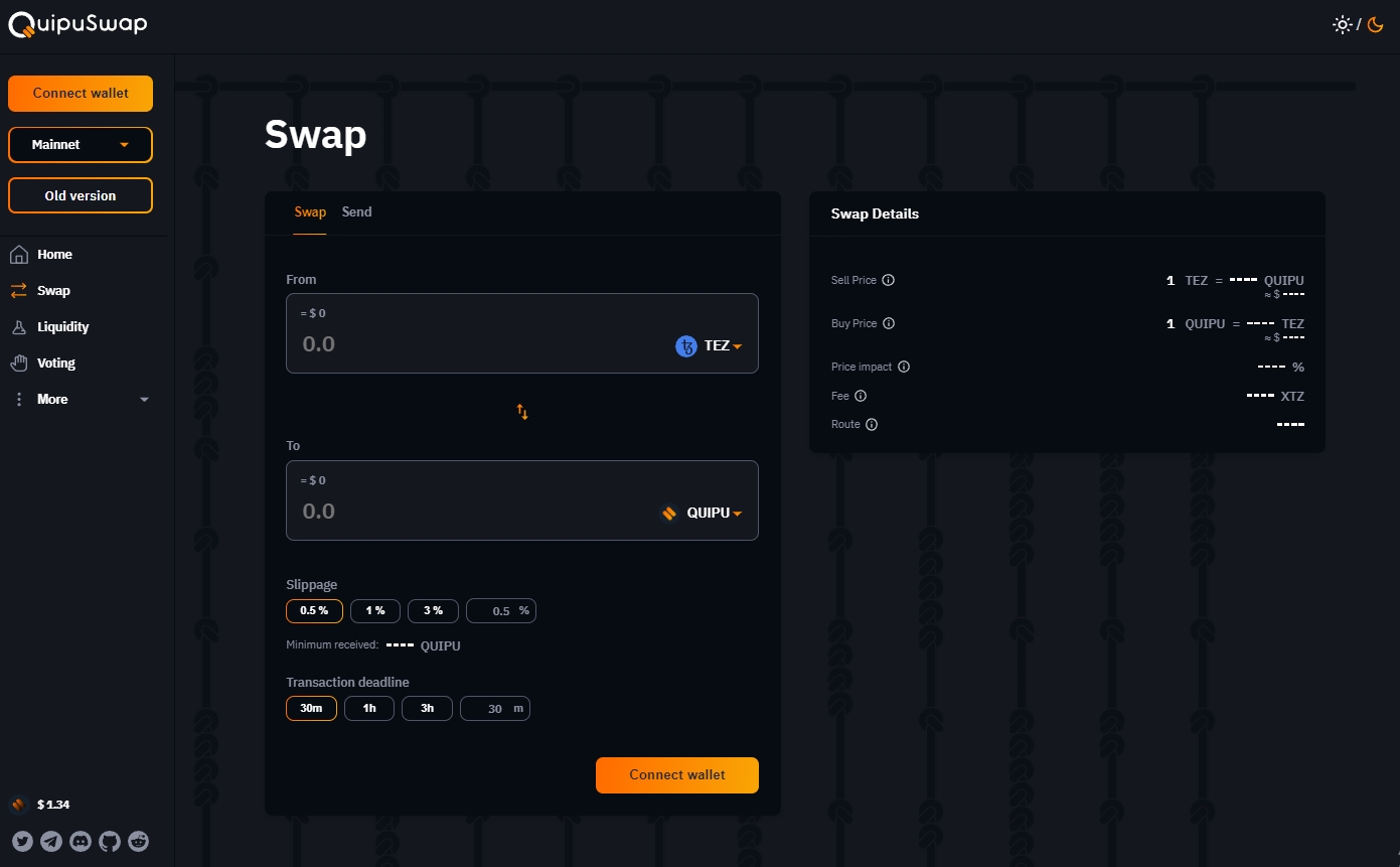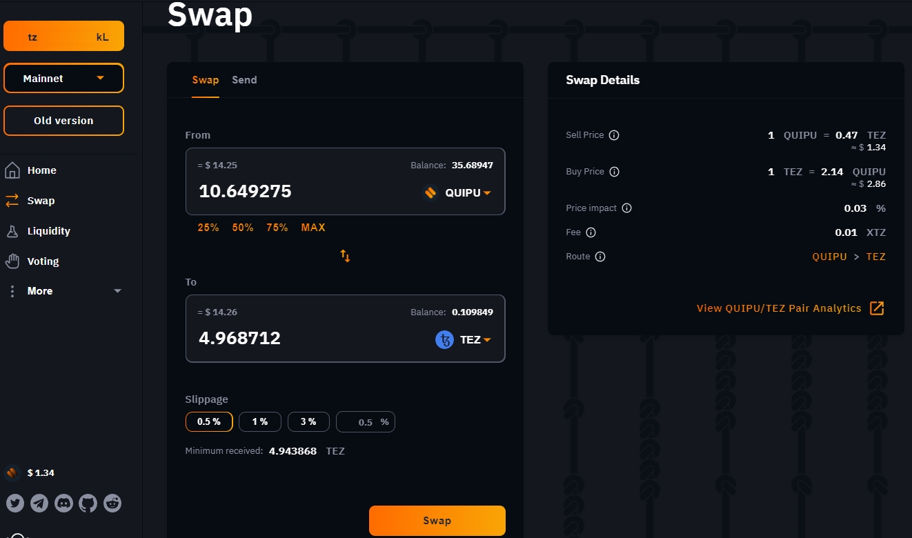 Swapping Tezos-based tokens is the main feature of QuipuSwap.